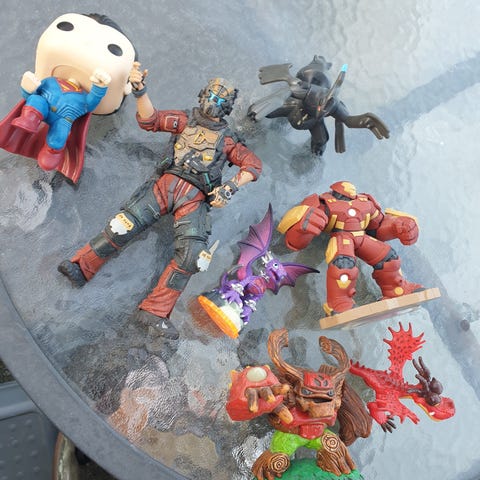 Guttungen selger 3 tøffe figurer som i hovedsak har stått til pynt på hylla.