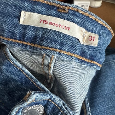 Levi's 715 Bootcut jeans for kvinner i størrelse XS med midjevidde W25. Jeansene er blå og laget av denimmateriale. Modellen har bootcut passform.