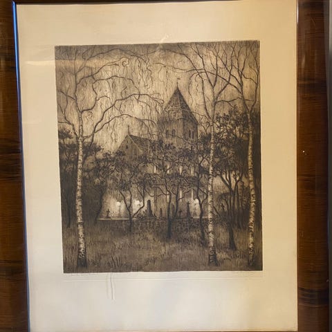 Eldre litografi av Arent Christensen. 49,5 cm x 26 cm. L7.