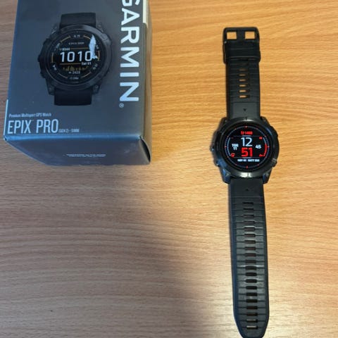 Selger pent brukt Epix2 i forbindelse med overgang til Fenix 8. Klokken har ingen riper i glass, noe slitasje i ring. Pulsbelte og lader medfølger ikke.