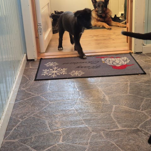 Hun er ikke vokst opp i kasse, men sammen med oss som familie. Trygg og livlig valp.