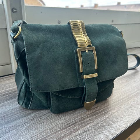 NB! Som det fremkommer på bildene er det noe misfarging - ikke fordi den er spesielt mye brukt, men fordi jeg var så uheldig å ha en kåpe som smittet svartfarge over. En runde med impregneringsspray kan friske opp fargen, men jeg tror dessverre misfargingen har kommet for å bli. Vesken er ellers i perfekt stand. Selges megarimelig!