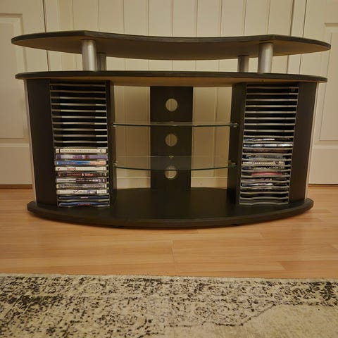 Det er plass til en vanlig forsterker, dvd spiller osv i det midterste rommet.