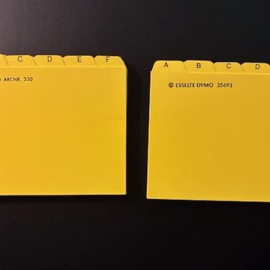 Alfabetisk indeksregister med bokstaver fra A til Å, designet for å organisere dokumenter eller filer. Produktet består av flere ark, hver merket med en bokstav for enkel sortering. Passer til standard permer eller mapper og egnet for både kontor- og hjemmebruk.