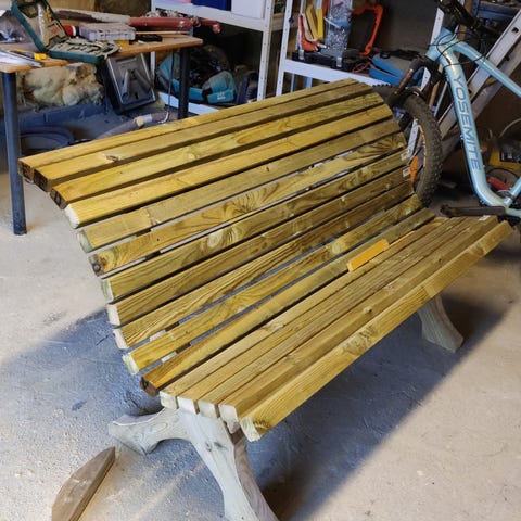 Hjemmelaget Sørlandsbenk. Lengde er 120. Laget i dag treverk