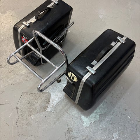 SW-motech og Hepco & Becker braketter for sidevesker/kofferter. SW- motech er tilpasset monolock/givi- system. Selges SAMLET. Passer til ukjent modell mc men kan tilpasses de fleste sykler. Sender desverre ikke. Siden det ikke har vert montert i mitt eie så kan jeg ikke garantere at alt er komplett. Brakett Rack Bagasje Oppheng Monolock