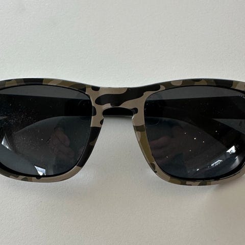 Veldig pent brukte solbriller til barn selges Det er gode solbriller kjøpt hos optiker. Det følger med etui og pusseskinn. Ca 12 cm brede.
