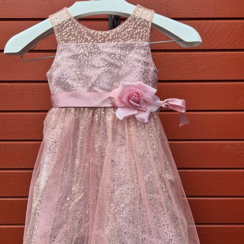 Søkeord: Festkjole, kjole, skjørt, glitter, jente, festklær, bursdag, str 110, str 116