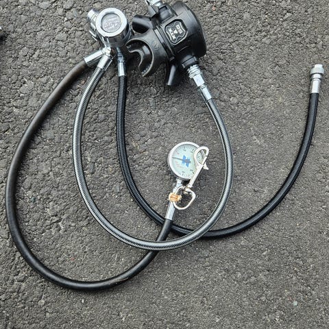 Selger mitt komplette ventilsett pga lite bruk. Ny service 9.9.25. Settet er brukt både med enkelflaske og dobbelsett.