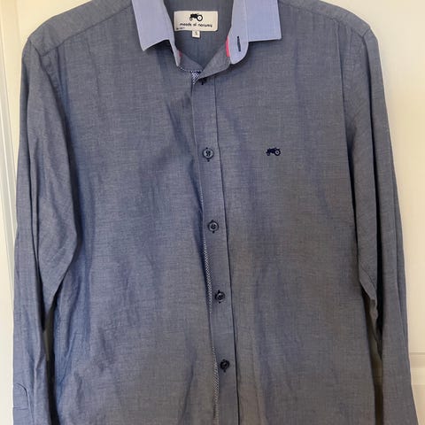 Skjorten har knappelukking og lange ermer med mansjetter. Ermene kan brettes opp med stropp som festes i knapp.