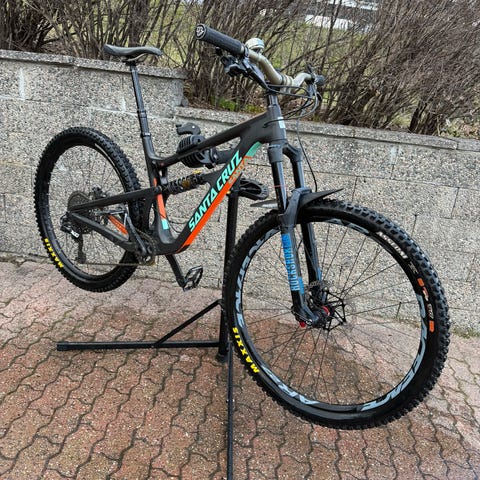Selger en Santa Cruz Bronson C 2014-modell i god stand, grunnet lite bruk. Fox Kashima dempegaffel foran og bak. Shimano XT gir og bremser. Rammestørrelse: Large. Har satt på nye håndtak (ikke med på bildene).