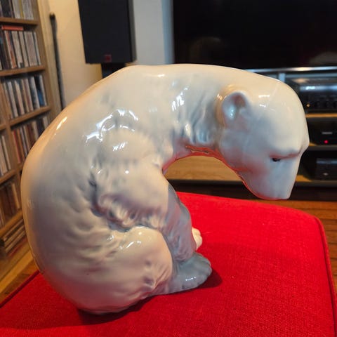 Selger en nydelig telysholder fra Porsgrund Porselen, motiv "Polar Bear", en del av Svalbard Fauna-serien