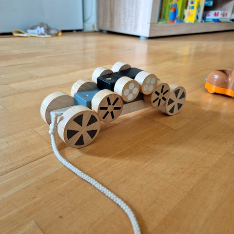 Selger en nydelig trekkeleke fra det franske kvalitetsmerket Djeco. Leken er laget i solid tre, malt i fine farger (hvit, gul, grønn og oransje), og har en liten snegle på siden. Kaninen har fire hjul og en grønn snor, slik at barnet enkelt kan dra den etter seg. Perfekt for små barn som vil utvikle motorikken og fantasien!