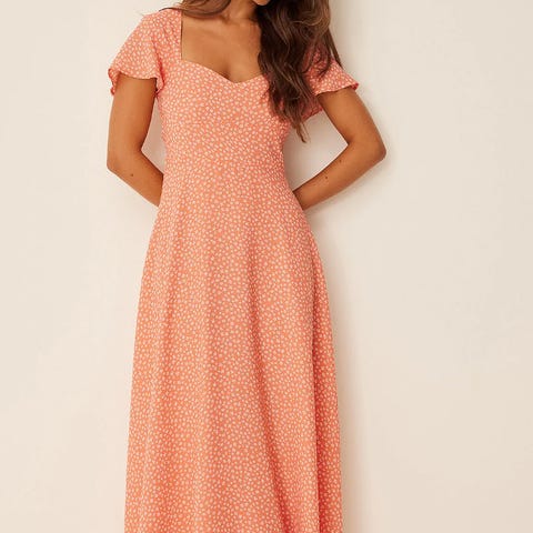 Ubrukt sommerkjole, oransje, rosa, ferskenfarget
