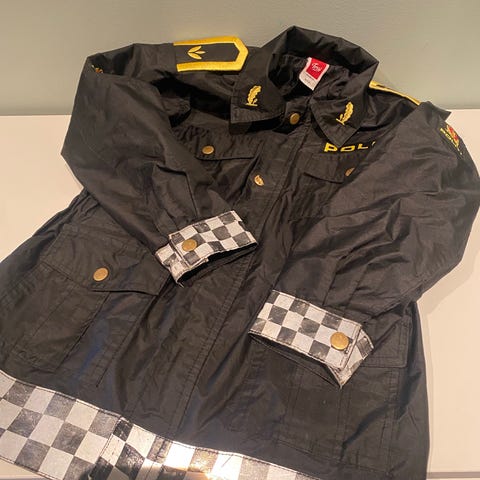 En fin jakke passer som bekledning til kostium fest eller vannlig hver dags jakke. Størrelse barn 4 år. Fremstår som ny.