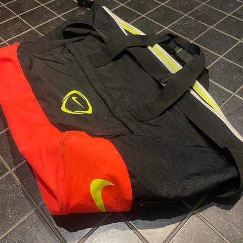 Liten og nett Umbro sportsbag. Har 2 stk, en grå og en svart. Laget i slitesterkt materiale med logo på siden. Passer til oppbevaring av sportsutstyr eller som en praktisk bag til hverdagsbruk. Fint til en som skal starte på håndball. Pris 250kr per stk.