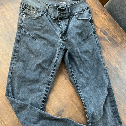 Superslim, knapt brukt da disse ble for trange for meg. Lommer foran og bak, glidelås og knepping.