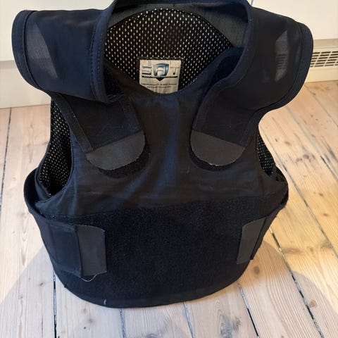Skudd og stikksikker vest fra Swedish Body Armour. Modell Combo V 3D (II) Light. Beskytter opp til 357 Magnum. Meget lite og pent brukt. Str. XXL, Nypris 6190.
