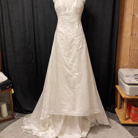 Lufter interessen for brudekjolen min. Originalpris 13.200 kr + skredder 6.600 kr. Selger for 9.000 kr. Tilsvarer en xl/xxl. Ta kontakt for mål. Stjørdal/Trondheim.