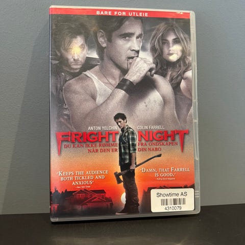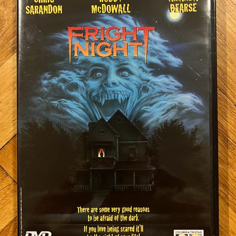 Meet Jerry Dandridge. He's sweet, sexy, and he likes to sleep in late. You might think he's the perfect neighbor. But before inviting Jerry in for a nightcap, there's just one thing you should know. Jerry prefers his drinks warm, red and straight from the jugular! It's Fright Night, a horrific howl starring Chris Sarandon as the seductive vampire and William Ragsdale as the frantic teenager struggling to keep Jerry's deadly fangs out of his neck. Only 17-year-old Charley Brewster (Ragsdale) knows Jerry's bloodcurdling secret. When Charley can't get anybody to believe him, he turns to TV horror host Peter Vincent (Roddy McDowall), who used to be the "Great Vampire Killer" of the movies. Can these mortals save Charley and his sweetheart Amy (Amanda Bearse) from the wrathful bloodsucker's toothy embrace? If you love being scared, Fright Night...will give you the nightmare of your life.