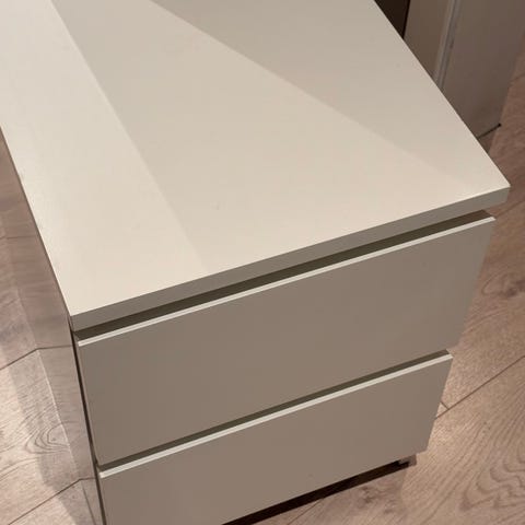Noen merker, synlig brukt, men fortsatt mye nattbord igjen. Begge skuffene fungerer