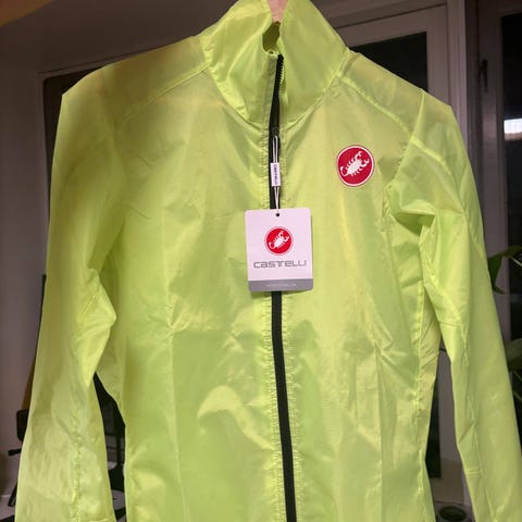 Meget god jakke til høst, vinter og vår. Noen år gammel, men fortsatt like hel og fin. Alle glidelåser fungerer 100%. Ingen hull eller rifter. Varm og vindtett, vannavstøtende materiale. Kvalitetsjakke fra Castelli! Kanskje litt liten i størrelsen, men jakka har litt stretch.