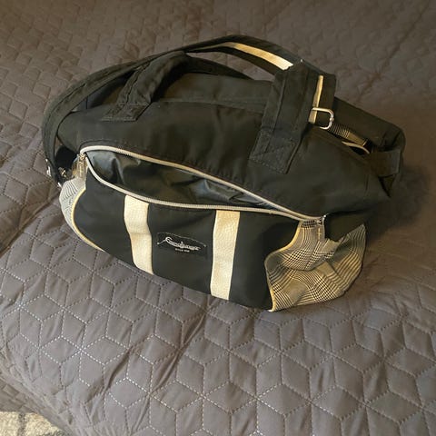 Romslig kurv under setet med 10 kg kapasitet og baklomme med glidelås.