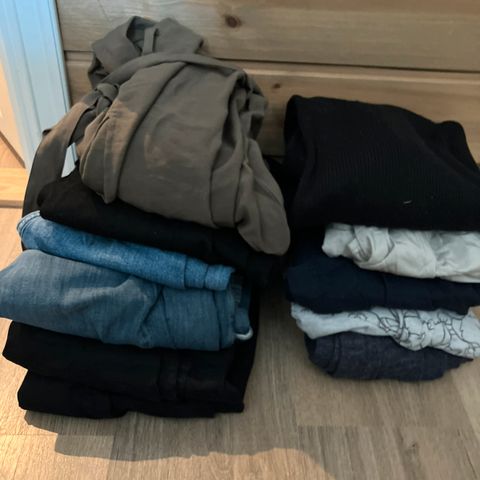 To jeans, en joggebukse og en svart bukse. Joggebukser og den svarte er ubrukt. Jeans er brukt et par ganger. Selges samlet for 500 kr
