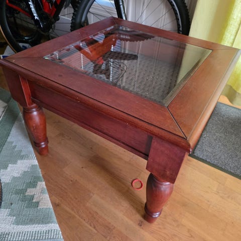 Hel rosentre, kinesisk salongbord med glassplate