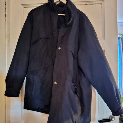 Foret jakke fra Timberland. Mørk blå. Hette inne i kragen. WeatherGear.