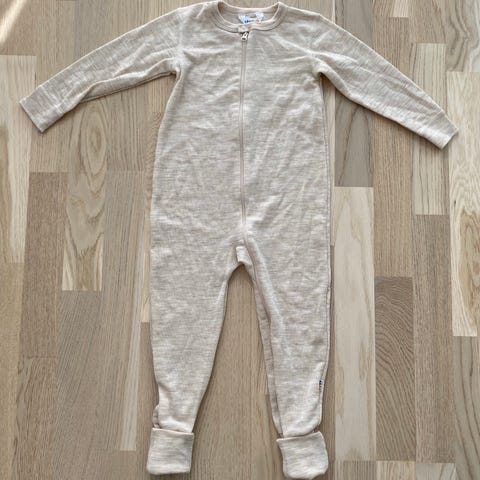 Myk hedress i ull og bambus. Dressen har tryllefot som kan brettes til en "sokk".