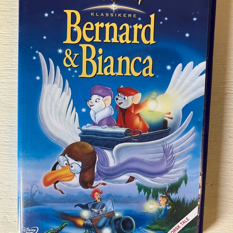 Walt Disney Bernard & Bianca DVD med norsk tale. Animasjonsfilm i klassisk Disney-stil. DVD-en inneholder filmen med underholdende karakterer og eventyrlig handling. Passer for alle aldre og samlere av Disney-filmer.
