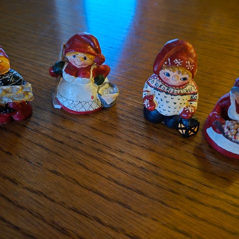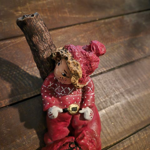Søt liten figur som sitter på en tre rot, sammen med en liten mus. Lite agg under figuren som ikke syntes når den står, se bilde