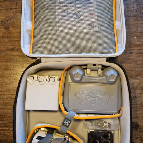 - Li-Po oppladbart batteri, lades via Micro USB-C. Kan fly i opp til 25 minutter.