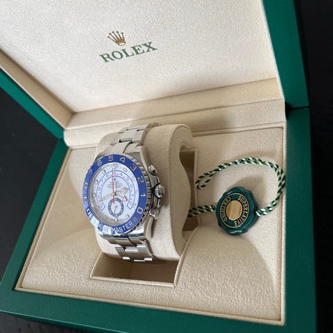Alt som fulgte med klokka ved kjøp følger naturligvis med (inner- og ytterboks, tags, garantikort, ekstra ledd, bezelbeskytter og booklets). Service ble tatt i 2022, full oversikt på hva som ble gjort og kvittering på dette medfølger.