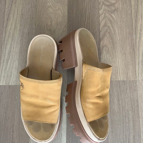 Timberland sandaler for dame i størrelse 39, farge svart. Sandalene har justerbare borrelåsstropper for tilpasning og en tykk, mønstret gummisåle for grep og komfort. Materialet på sandalene er syntetisk, og de er designet for bruk i varme værforhold.