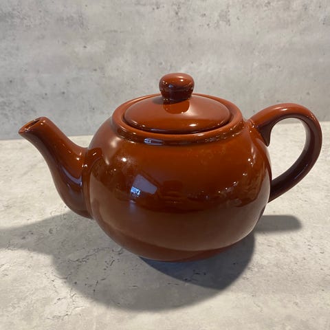 Brukt mørkebrun tekanne. Usikker på merket da det er utydelig. Ser ut som den mangler en liten flik, se bilde.