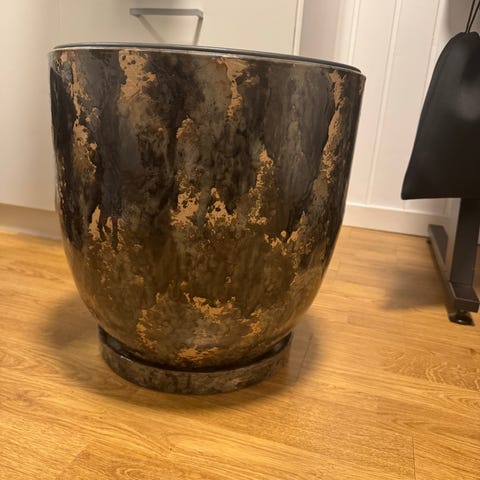 Selger en ubrukt potteholder kjøpt på Plantasjen laget i metall. Passer til tre potter med en diameter på 15 cm.