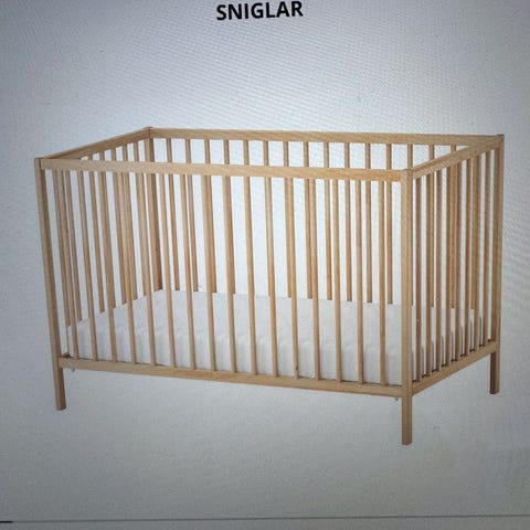 Pent brukt sprinkelseng. Følger med madrass. Du kan ha den fast eller gynge med den