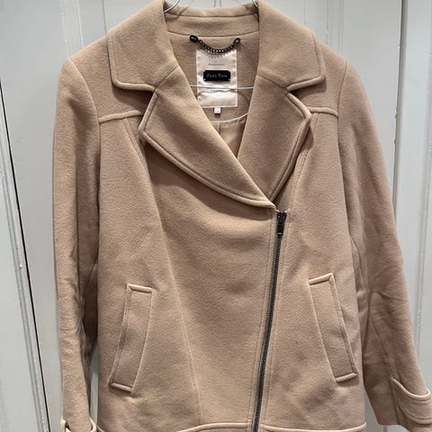Kort ulljakke fra kvalitetsmerket Mansfield. Litt padding i skuldrene som gir struktur. Det står ingen størrelse i jakken, men jeg anslår at det er en str. 36