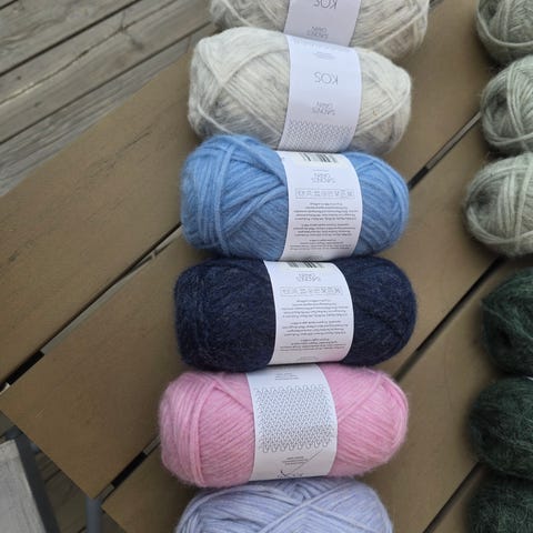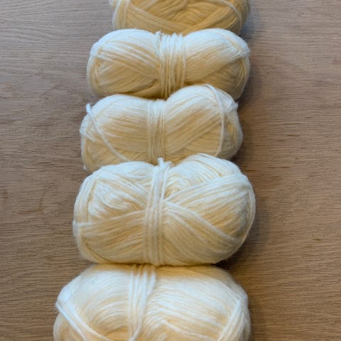 Selger 200 gram Kos i fargen 2310 Lys marsipan, alt i samme parti. Ny pris er 119,- per nøste, selges til 249,-