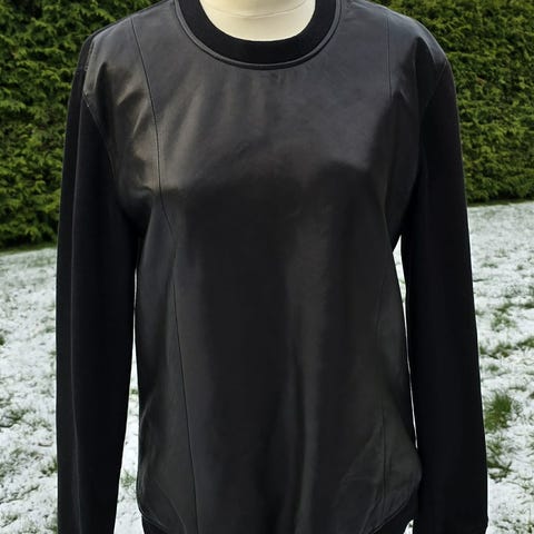 Genser med ull fra BLK DNM. Flott design med skinndetaljer. Genseren kan vaskes på håndvask.