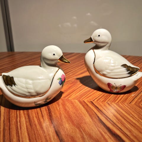 Fint porselen med et eksklusivt todelt sett 2 ender. Disse samlerfigurene, mesterlig laget i enkelt hvitt, imponerer med sin skinnende finish. Figurene er laget av porselen av høy kvalitet og utstråler eleganse og presisjon.