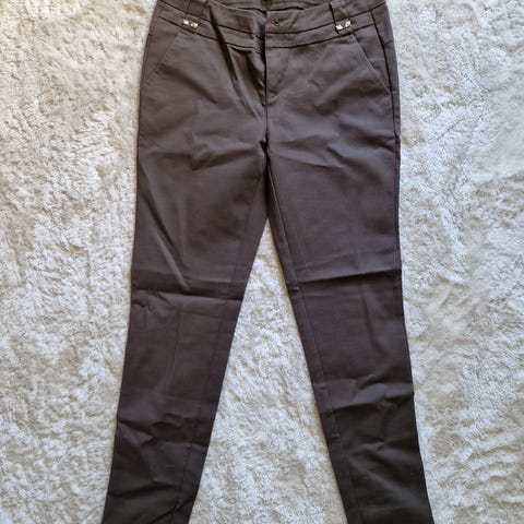 Flott mokkabrun coated bukse i litt blank overflate . Litt skinn look. Godt stoff med god stretch. Smal passform , passer en str 36/38.