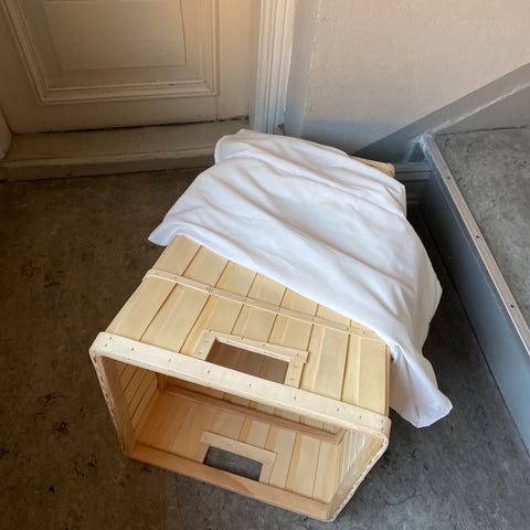 Uåpnet/ubrukt, kun tatt av papphylsene på tre av beina.