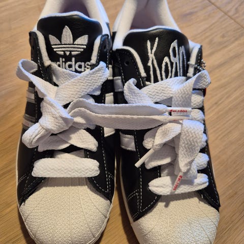 Dette er et stykke historie. Run DMC var gruppen som gjorde Adidas Superstar til den skoen de er i dag. Akkurat denne modellen ble laget som en hyllest til Run DMC som gjorde skoen til det ikonet den er i dag.