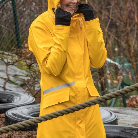 Gul regnjakke i str S fra Stormberg.