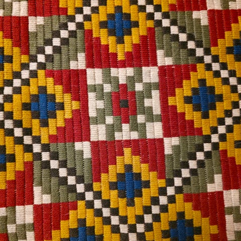Størrelse 120x72 cm. Noen slitte frynser i det ene hjørnet (se bilde).