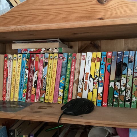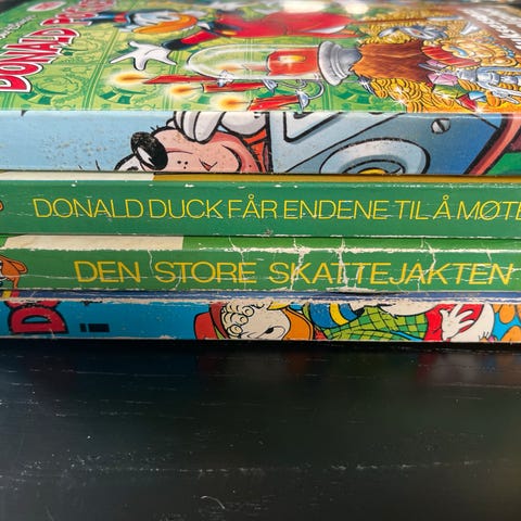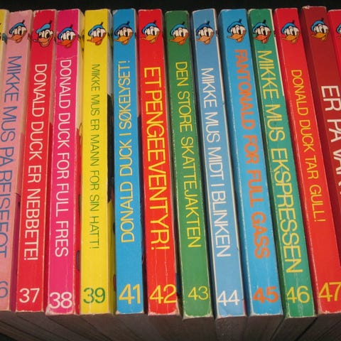 Sønnen min selger sine Donald Duck Donald Pocket tegneserier (stortsett på norsk, noen på tysk). Det sirka 170 bøker og tilstand varierer litt, Pocket er fra 1983 til 2015. Pris er mellom 10 og 20 kr per bok etter tilstand og sideantall.