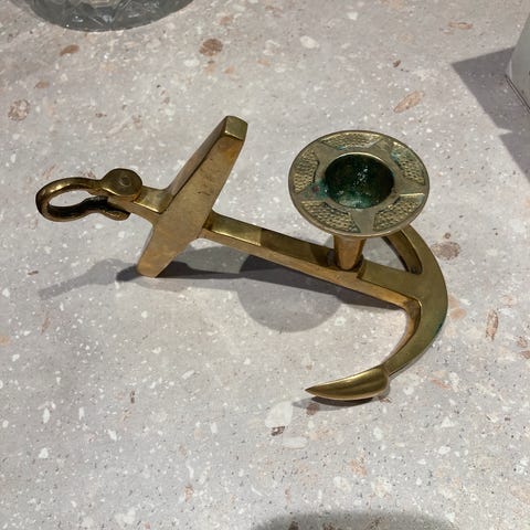 Samleobjekt i messing med håndtak, liten tallerken